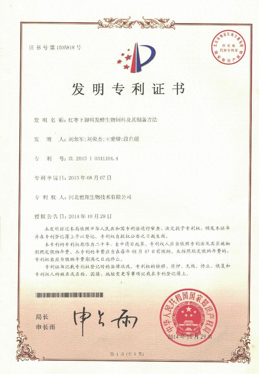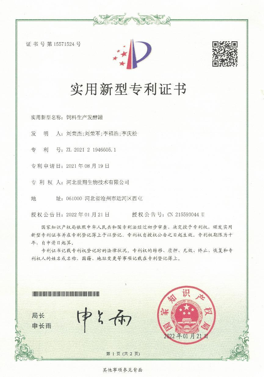 公司率先在同行业中引进全自控发酵设备,分别承担过国家,省 日本乱妇乱熟乱妇乱色A片,市级科研项目并顺利通过专家验收,我公司于2016年被认定为国家高新技术企业,沧州市农业产业化重点龙头企业,沧州市农业新技术协会会员副会长单位等,公司获得发明专利一项《红枣下脚料发酵生物饲料及其制备方法》和实用新型专利六项。